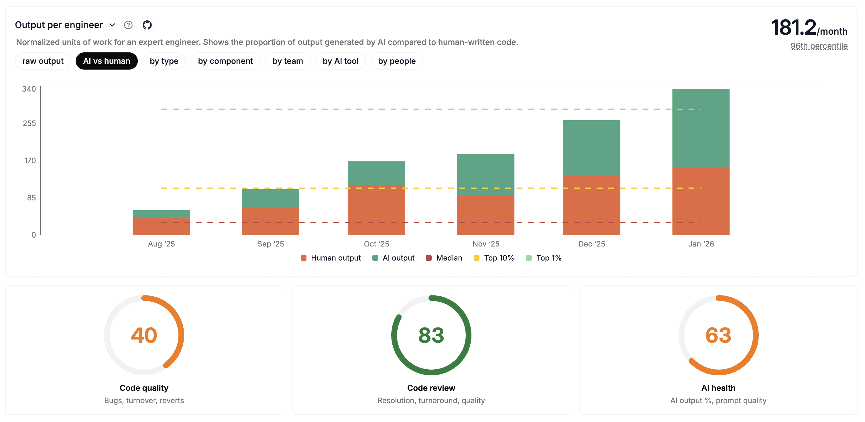 Measure exactly how much AI is improving your team's shipping velocity. Pinpoint who's using tools best and what best practices you can repeat.