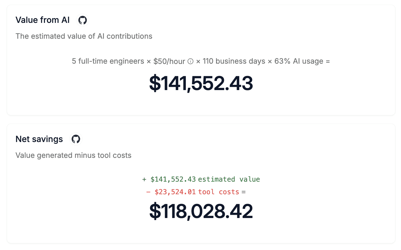 Connect AI spend to actual engineering output. See what portion of output is AI-assisted, how AI usage correlates with productivity, and where you're getting real efficiency gains versus where you're just adding cost.