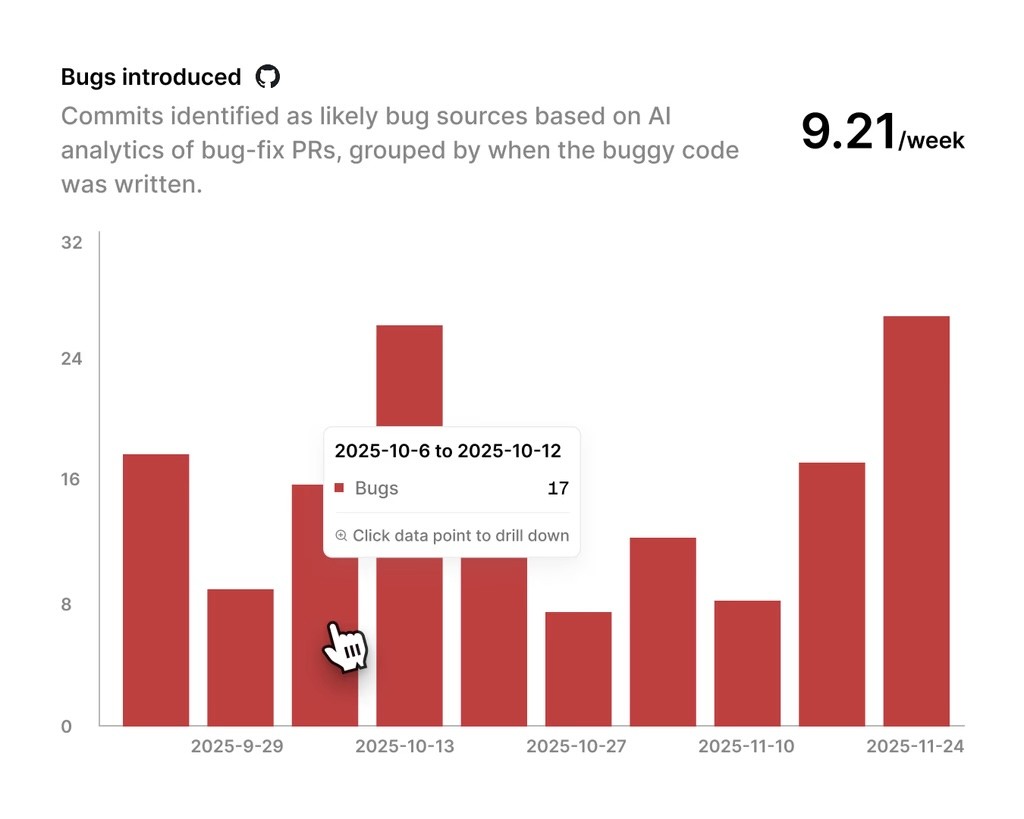Track revert rates, pinpoint bug-introducing commits, and identify fragile codebases before they slow your team down.