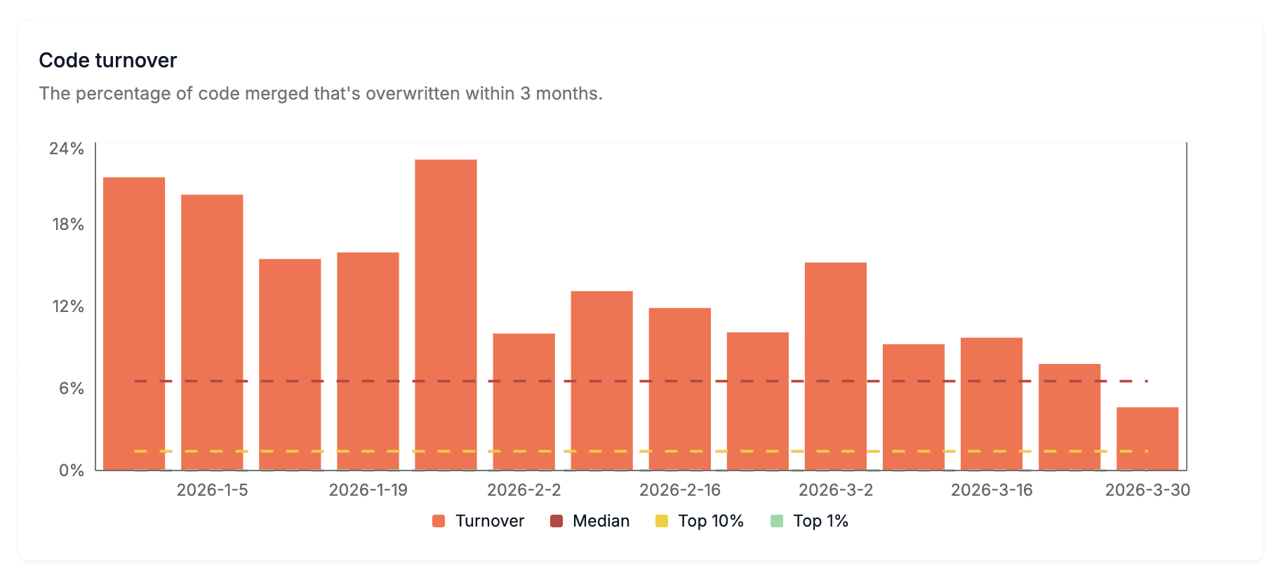 See which engineers and repos have the highest revert rates. Catch quality issues before they compound.