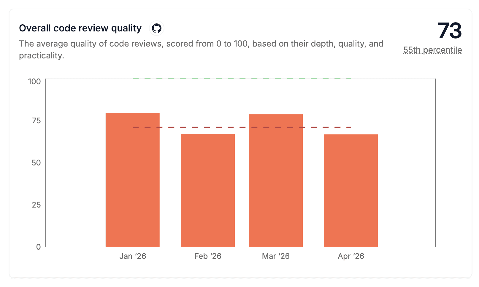 Score code review quality on depth, thoroughness, and practicality. Keep your review bar high over time instead of letting it silently degrade.