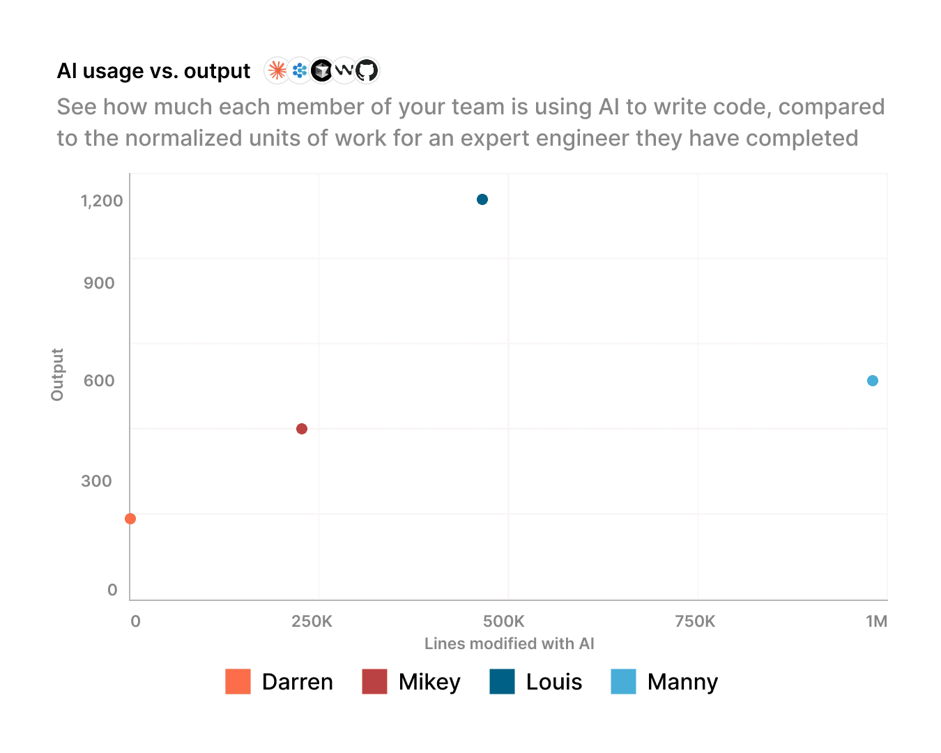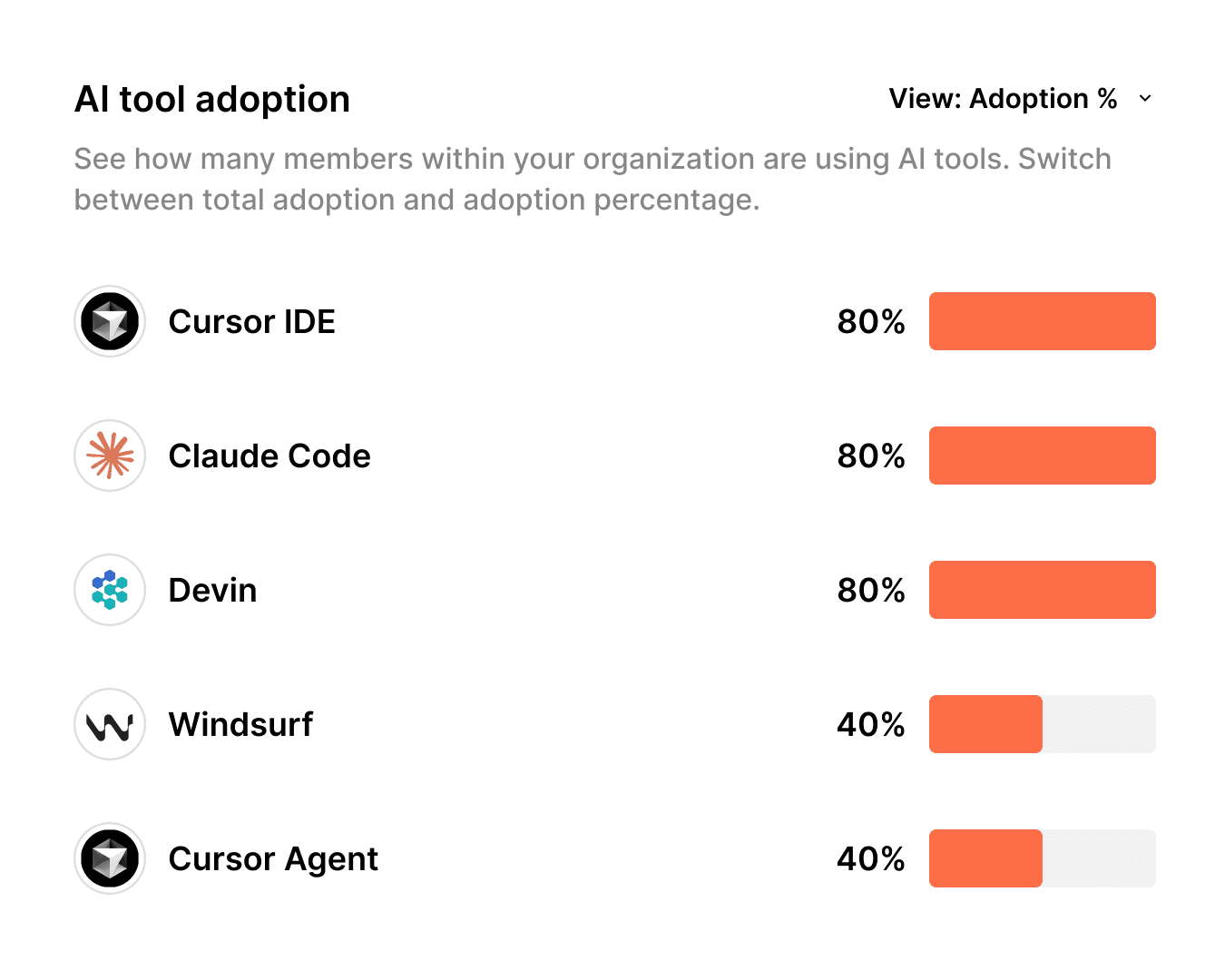See which AI tools your team actually uses, how much code they generate, and whether that code ships or gets reverted.