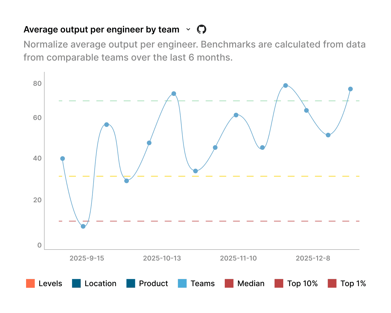 View output per engineer within a team context. Spot coaching opportunities and recognize your most impactful contributors.