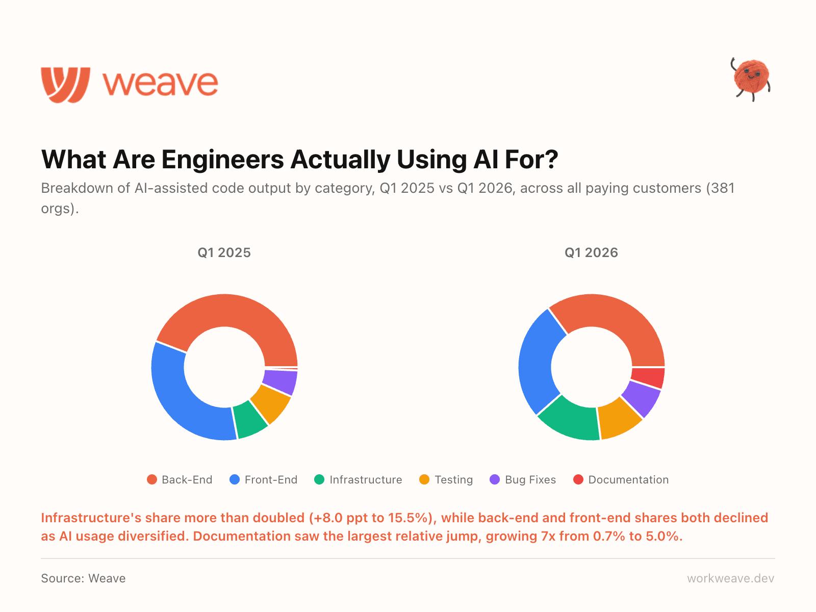 Teams are using it for the unglamorous but high-value work: infrastructure, devops, testing, and documentation. The teams getting the most out of AI are the ones deploying it across the entire engineering workflow, not just the parts that ship user-facing features.