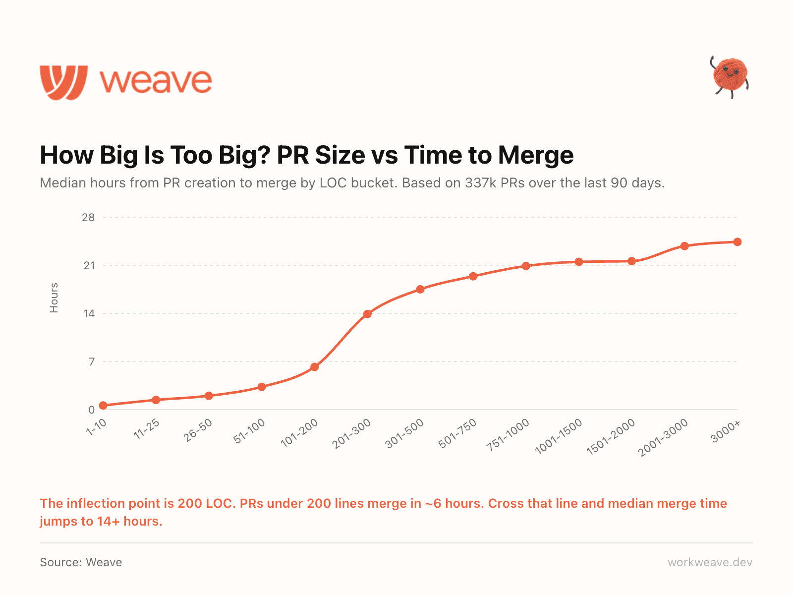 We analyzed hundreds of thousands of PRs to find where merge time breaks down. The inflection point is 200 lines of code.